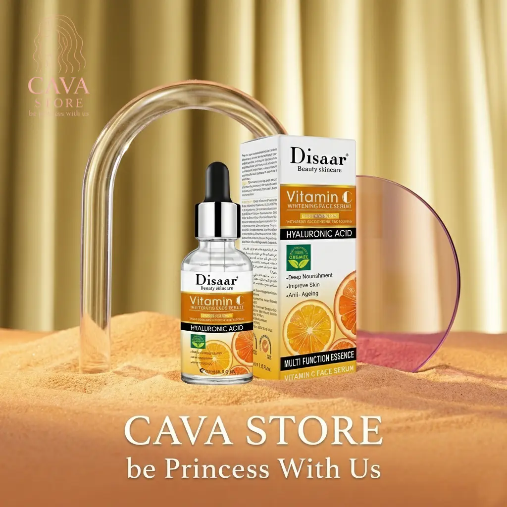 يأتيكم من CAVA STORE سيروم الوجه المتعدد الوظائف Disaar Vitamin C، الذي يجمع بين قوة الطبيعة والعلم. بتركيبة غنية بـ فيتامين سي المركز وحمض الهيالورونيك (Hyaluronic Acid)، يعمل هذا السيروم كعلاج مكثف لإصلاح البشرة، تفتيحها، ومنحها ملمساً ناعماً ومشدوداً. إنه "إكسير الشباب" الذي تحتاجه بشرتك لتقاوم علامات الزمن والإجهاد.