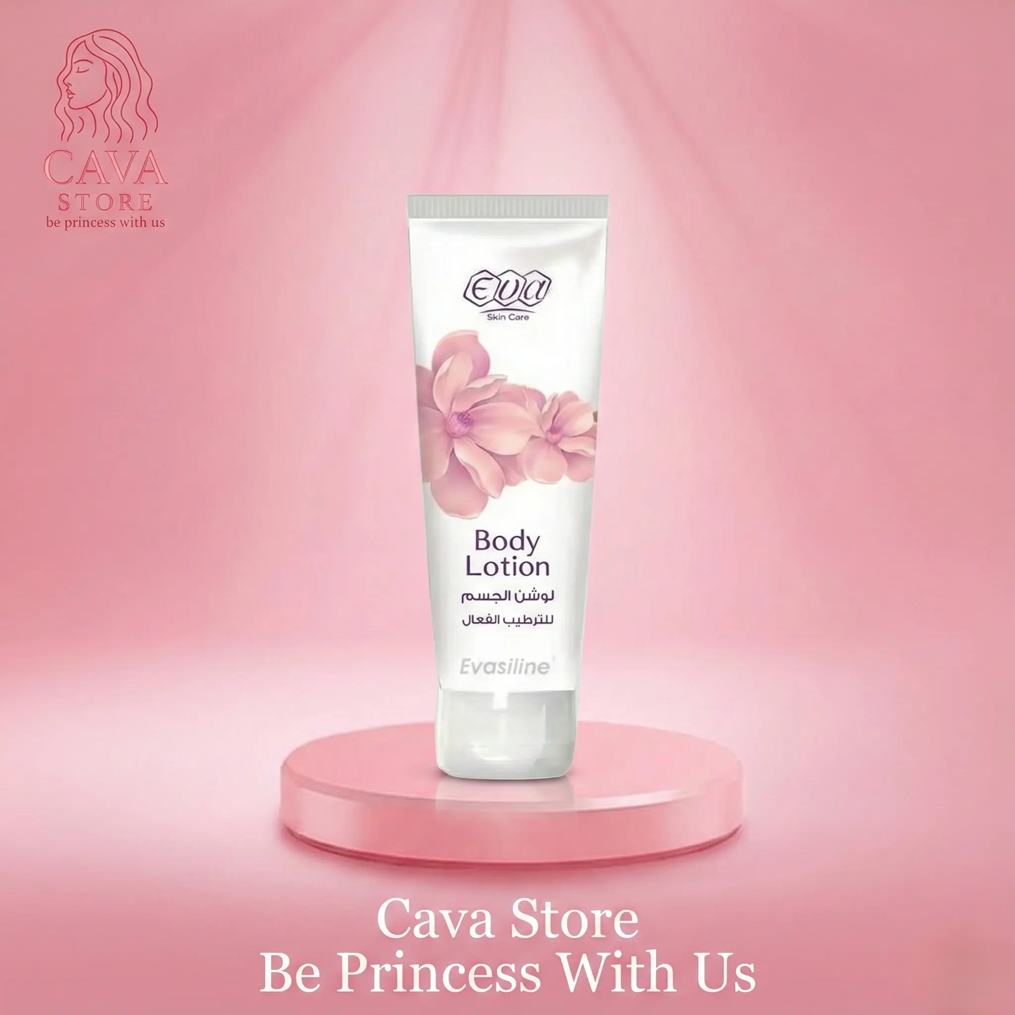 "لأنكِ تستحقين بشرة تتحدث عن جمالك، اجعلي لوشن Evasiline رفيقك اليومي. اطلبيه الآن من Cava Store