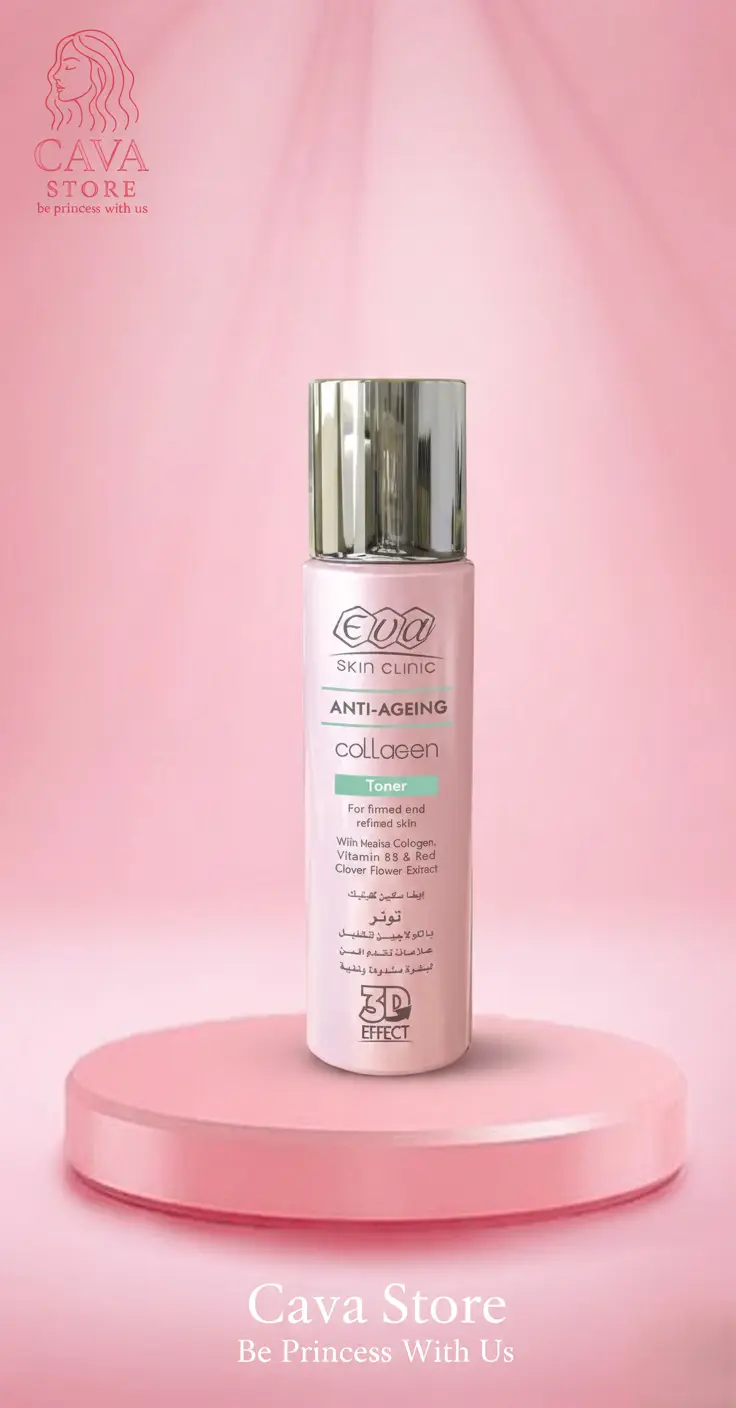 تونر إيفا كولاجين بتركيبة الـ 3D Effect لشد البشرة، تصغير المسام، وتقليل ظهور التجاعيد. مثالي لبشرة أكثر شباباً وحيوية.