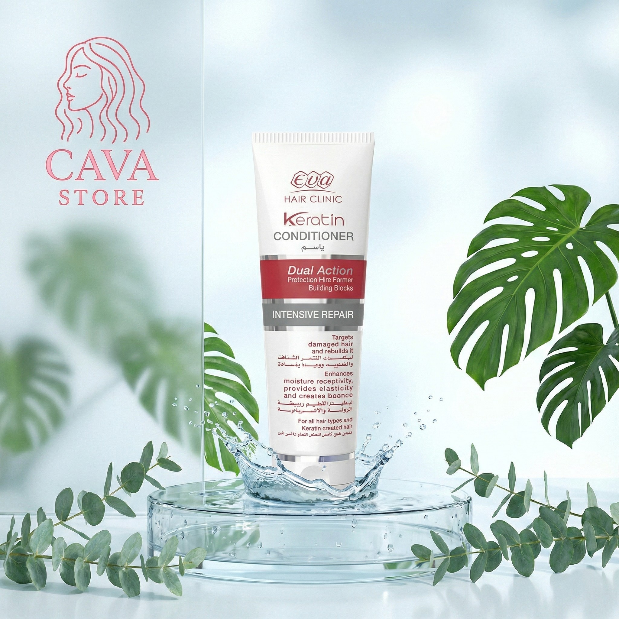 امنحي شعرك "العلاج" الذي يحتاجه وليس مجرد ترطيب! بلسم إيفا هير كلينيك بتركيبة الكيراتين المتطورة وتقنية "Dual Action"، مثالي للشعر المصبوغ والمعالج كيميائياً.