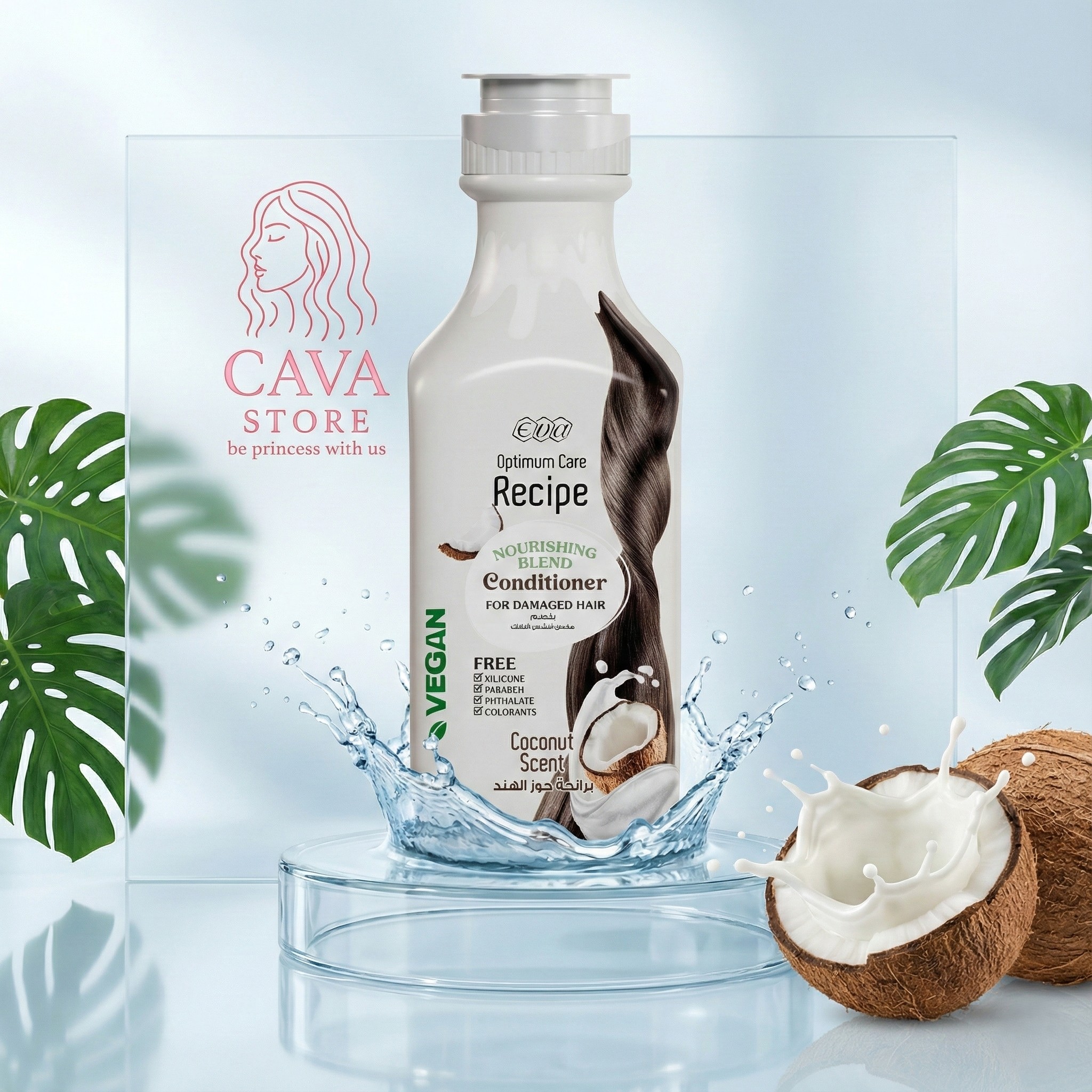 بلسم "إيفا أوبتيمم كير" بتركيبة نباتية فريدة خالية تماماً من السيليكون والبارابين. صُمم خصيصاً لإصلاح الشعر التالف وتغذيته بعمق، مع رائحة جوز الهند المنعشة .