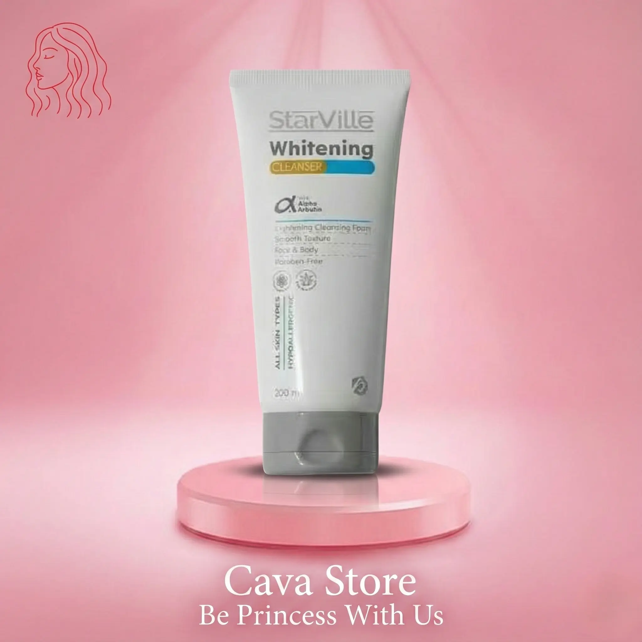 لأنكِ تستحقين بشرة مشرقة وموحدة اللون، يقدم لكِ CAVA STORE غسول StarVille Whitening Cleanser، الحل المثالي لتنظيف البشرة بعمق مع تفتيح البقع الداكنة والتصبغات. بتركيبته المتطورة المدعمة بـ الألفا أربوتين (Alpha Arbutin)، يعمل هذا الغسول على استعادة نضارة بشرتك الطبيعية بلطف وأمان.